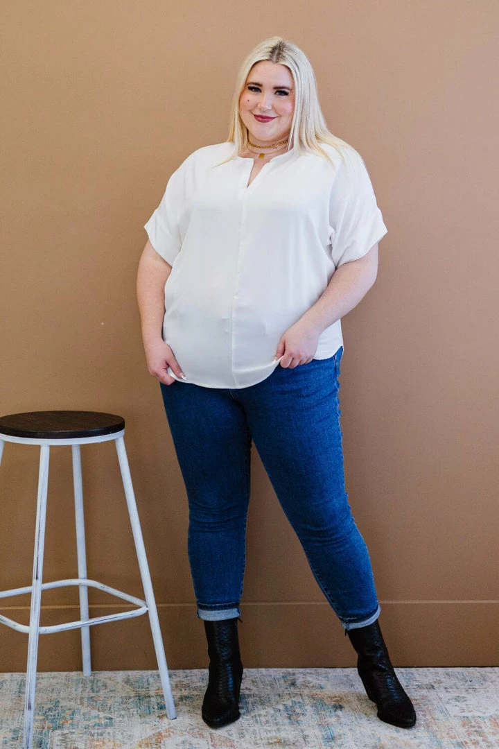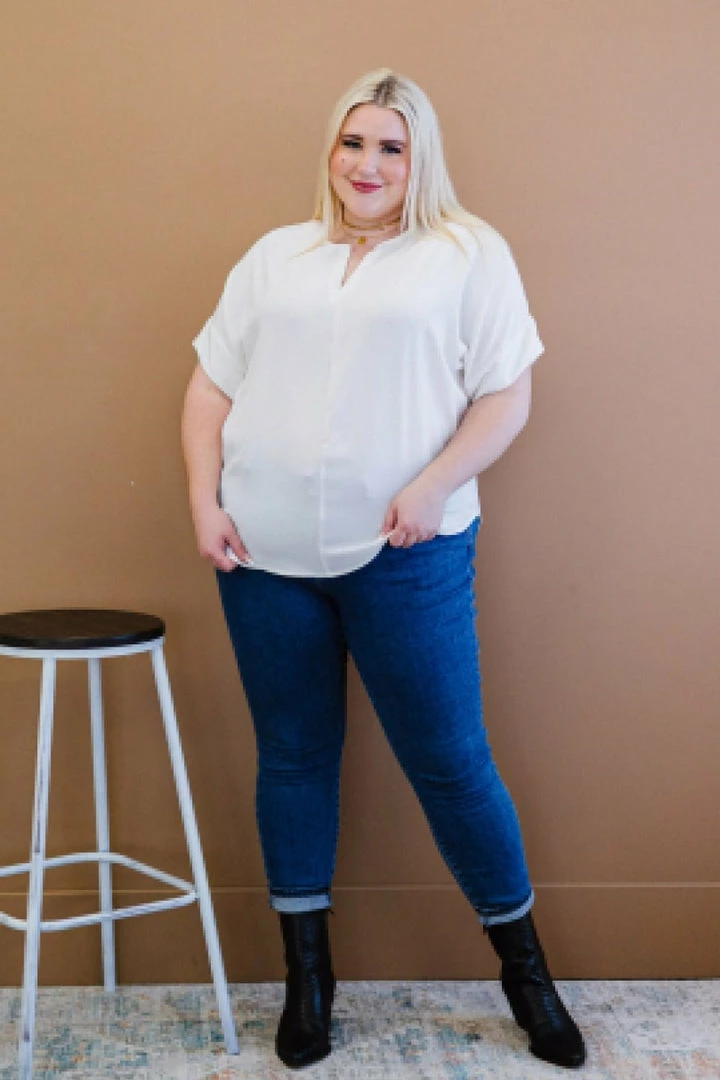 Show off your sense of style when wearing this simple yet chic top that can be styled in so many ways! The notched neck is ideal for adding a dainty necklace, and it can easily be worn under a statement blazer or kimono!