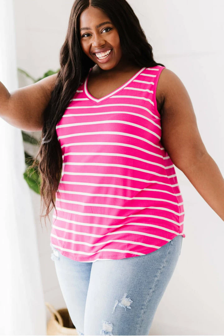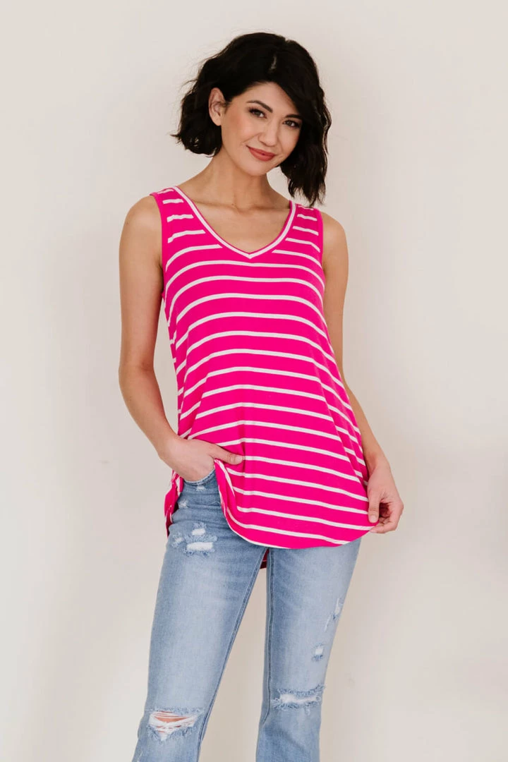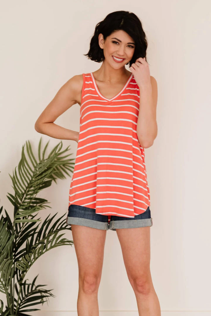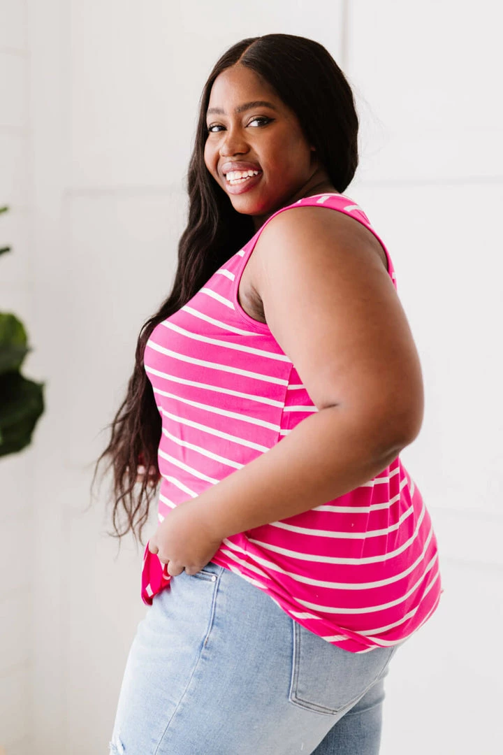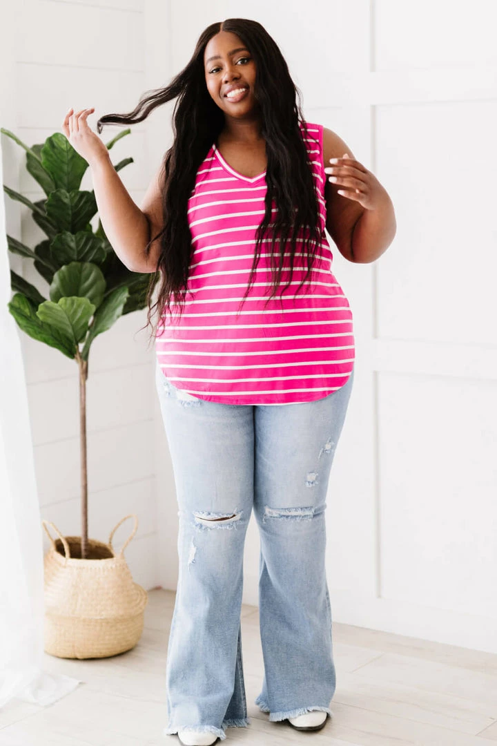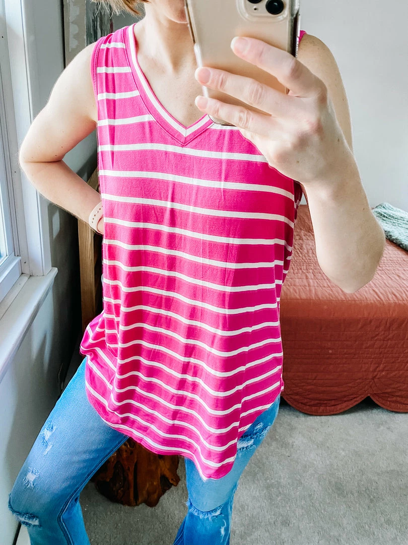 You don’t have to sacrifice comfort for style with this tank. It’s stretchy and has a thin striped pattern. The curved hem makes it easy to wear. Pair with jeans, shorts, or leggings, and you can even dress it up with a blazer or a skirt!
