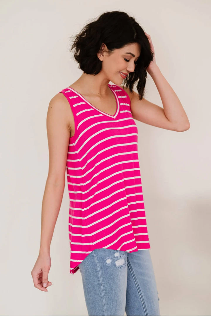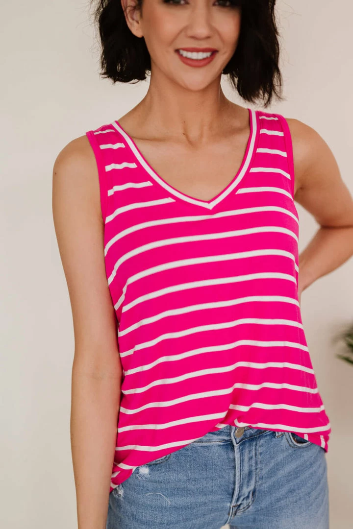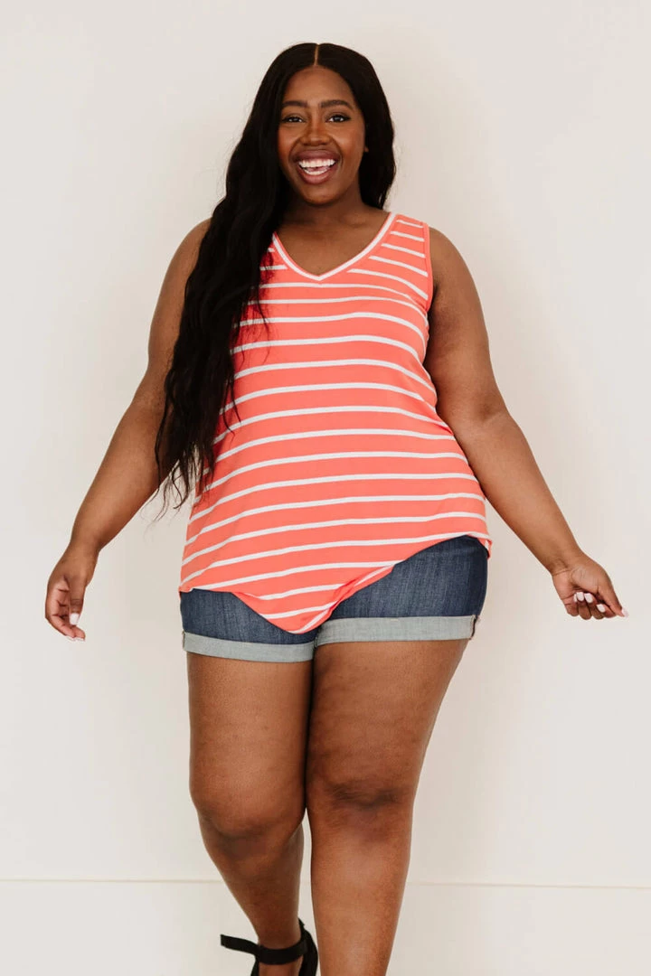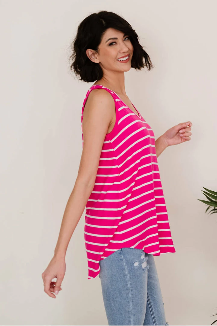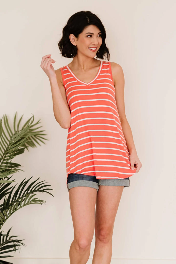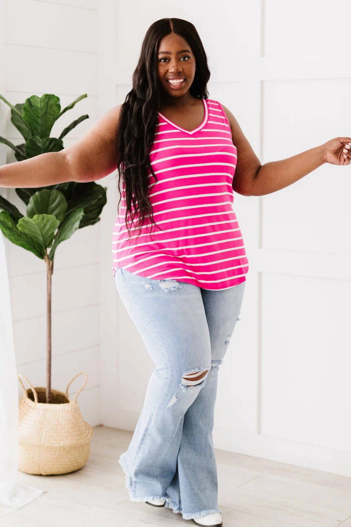 You don’t have to sacrifice comfort for style with this tank. It’s stretchy and has a thin striped pattern. The curved hem makes it easy to wear. Pair with jeans, shorts, or leggings, and you can even dress it up with a blazer or a skirt!