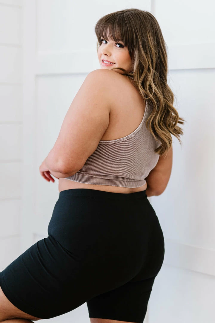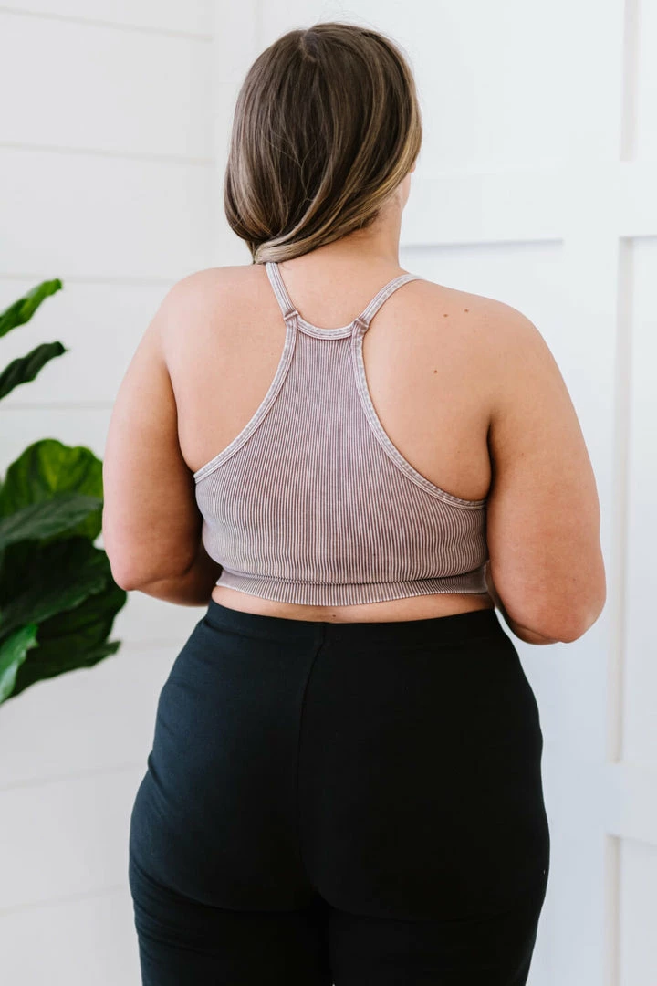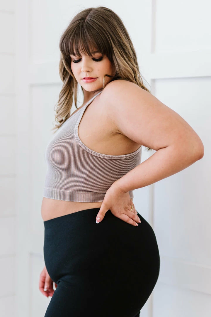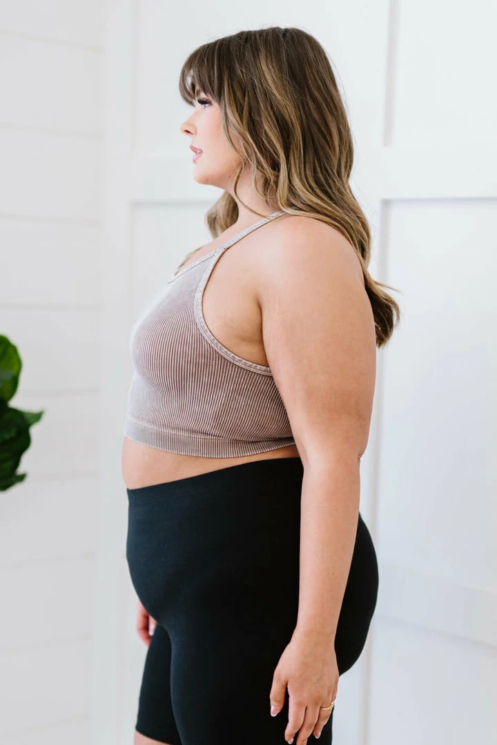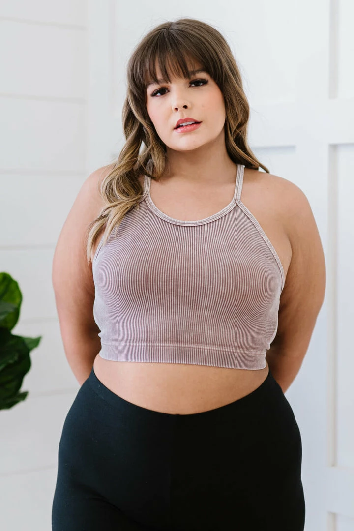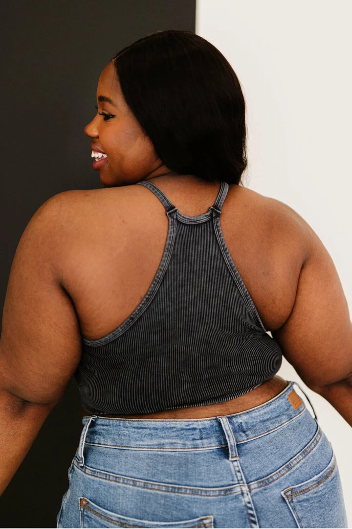 This cropped cami will really up your layering game. It comes in a subtle mineral wash on a ribbed, stretchy fabric. Wear under a shacket, a sheer top, or style it alone.