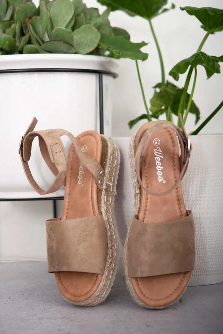 These versatile espadrille style sandals have an open-toe and open-back design, with an adjustable strap around the ankle. Pair them with jeans and a cute blouse or with a dress.