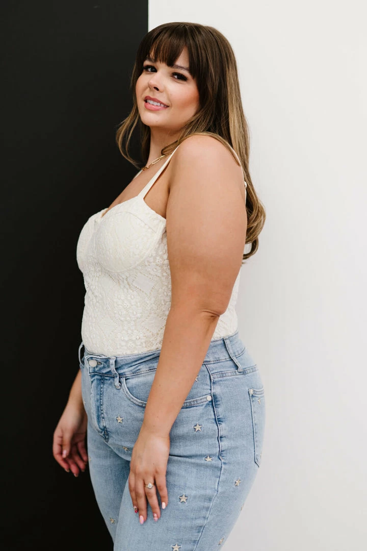A little bit of lace can really go a long way. This lace bustier bodysuit features non-removable padding, adjustable spaghetti straps, and a snapped closure at the crotch. Next time you’re wanting a romantic look, try adding this bodysuit to your look!