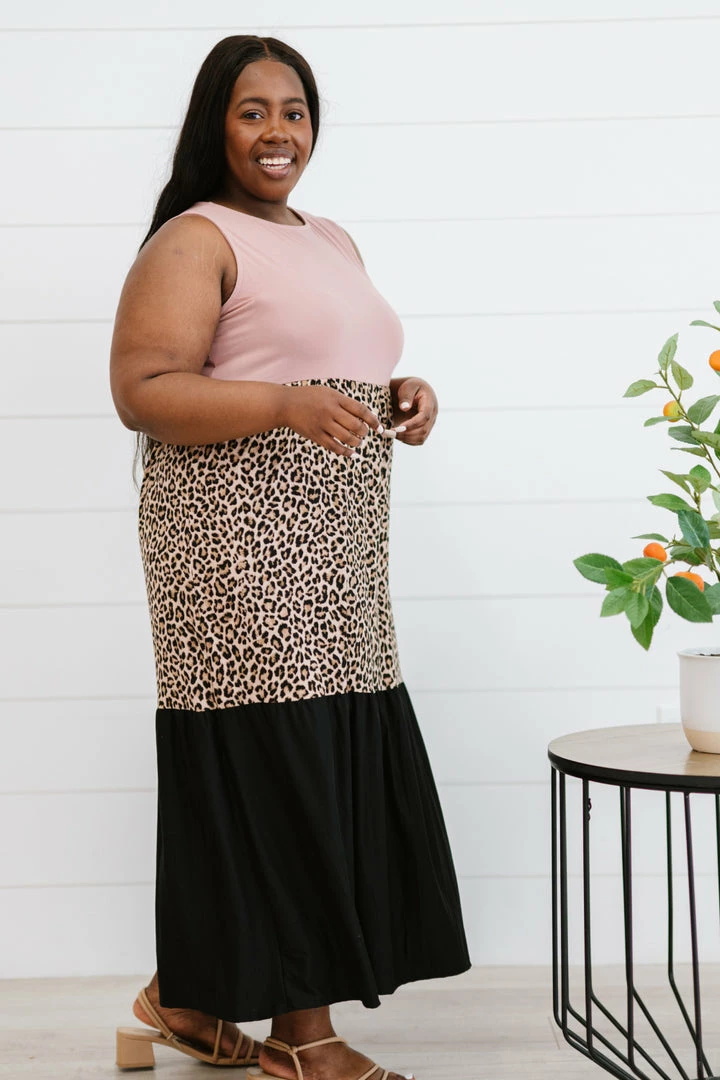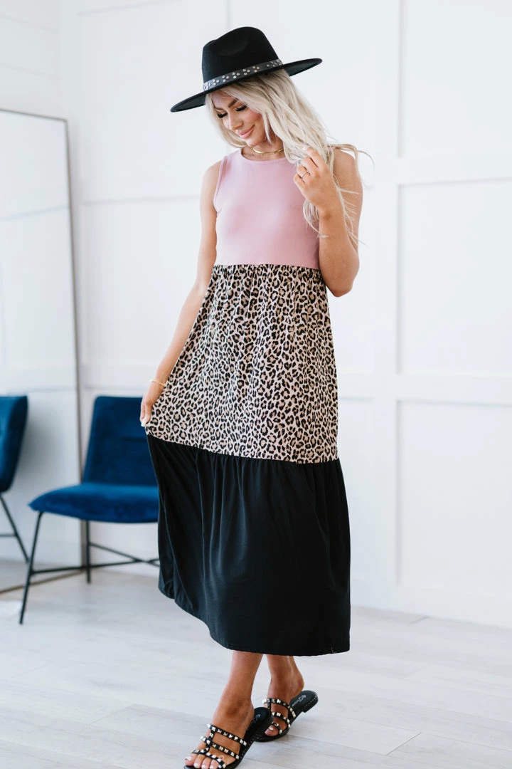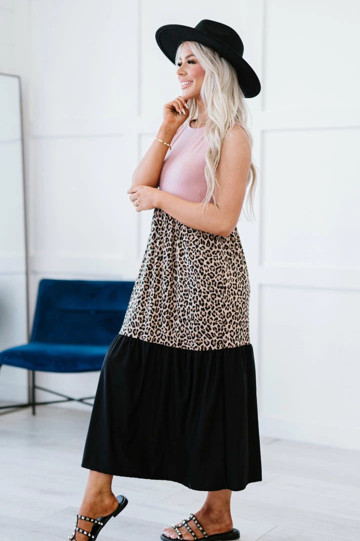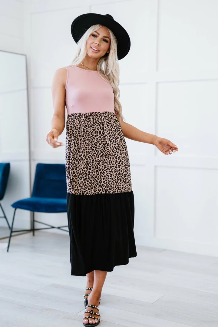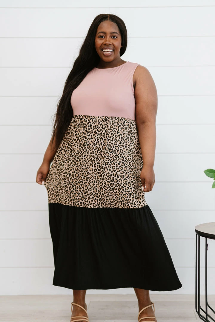 This casual color block dress features a leopard print tier in the center, buttery soft fabric, and high stretch to provide ultimate all-day comfort.