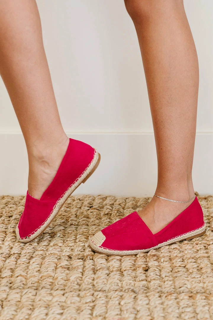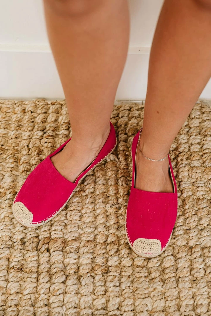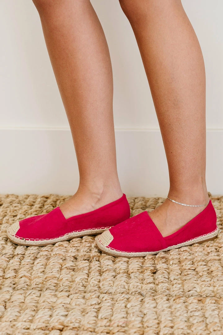 Canvas and jute make for a fun summery look on these slip-on flats. The top of the shoe is canvas, with a jute sole and toe. Slip these on with your cutoff shorts and a tank for an effortless look.