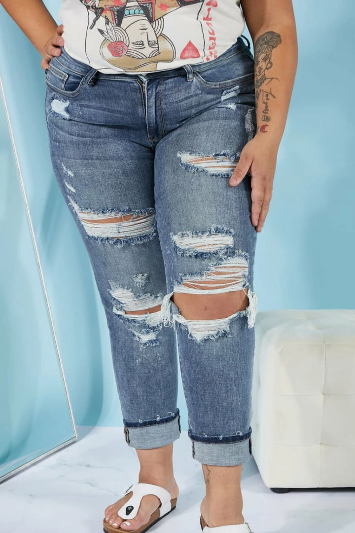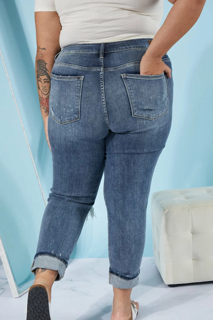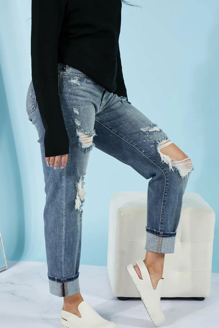 Boyfriend jeans are a staple for everyone’s closet, and these ones have some extra details you’re sure to love, including distressing and a bleach splash design.