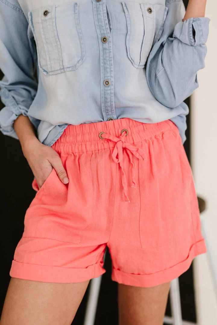 These linen blend shorts are your perfect beach companion. Bask in the sun and soak up some vitamin D while wearing these shorts. They have a functional drawstring, deep side pockets, and faux back pockets.