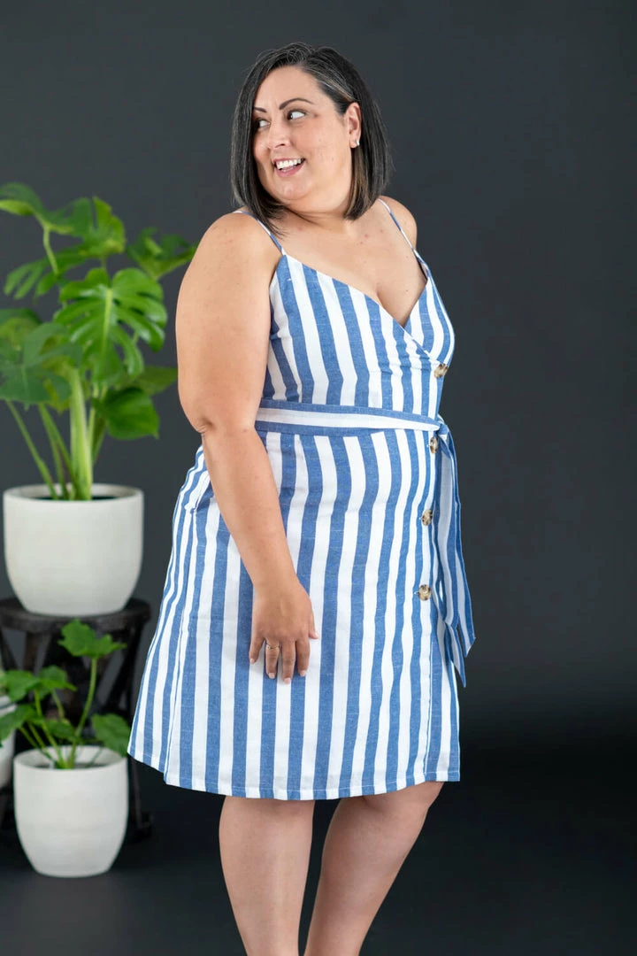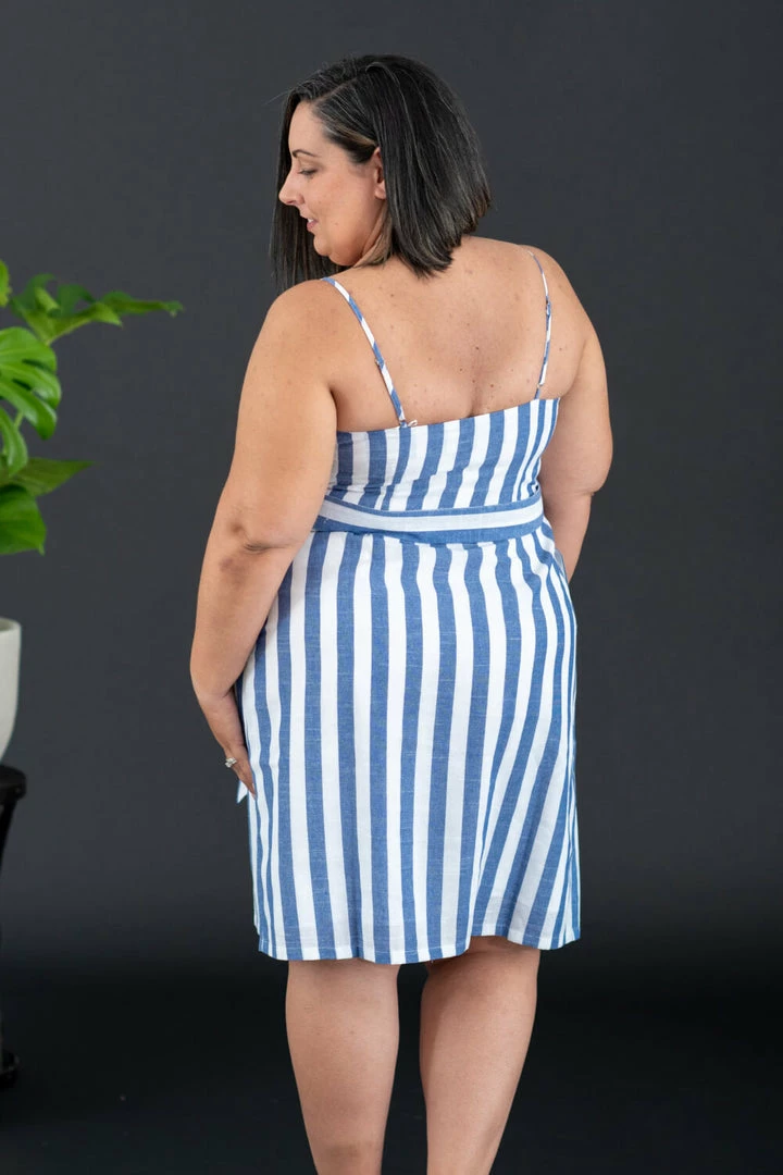 Classic and summery, this striped dress was made with a linen and cotton blend that will keep you cool on those hot and humid days. A sunhat, espadrilles, and a clutch will complete the look!