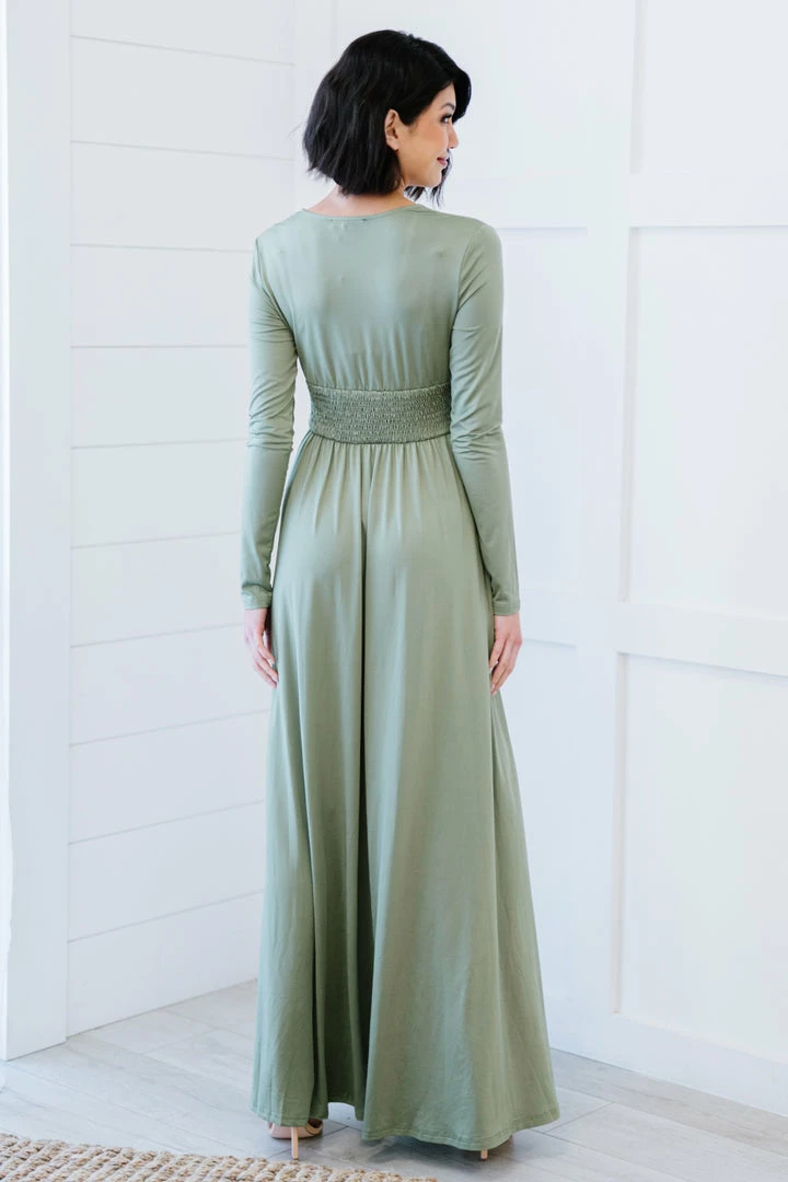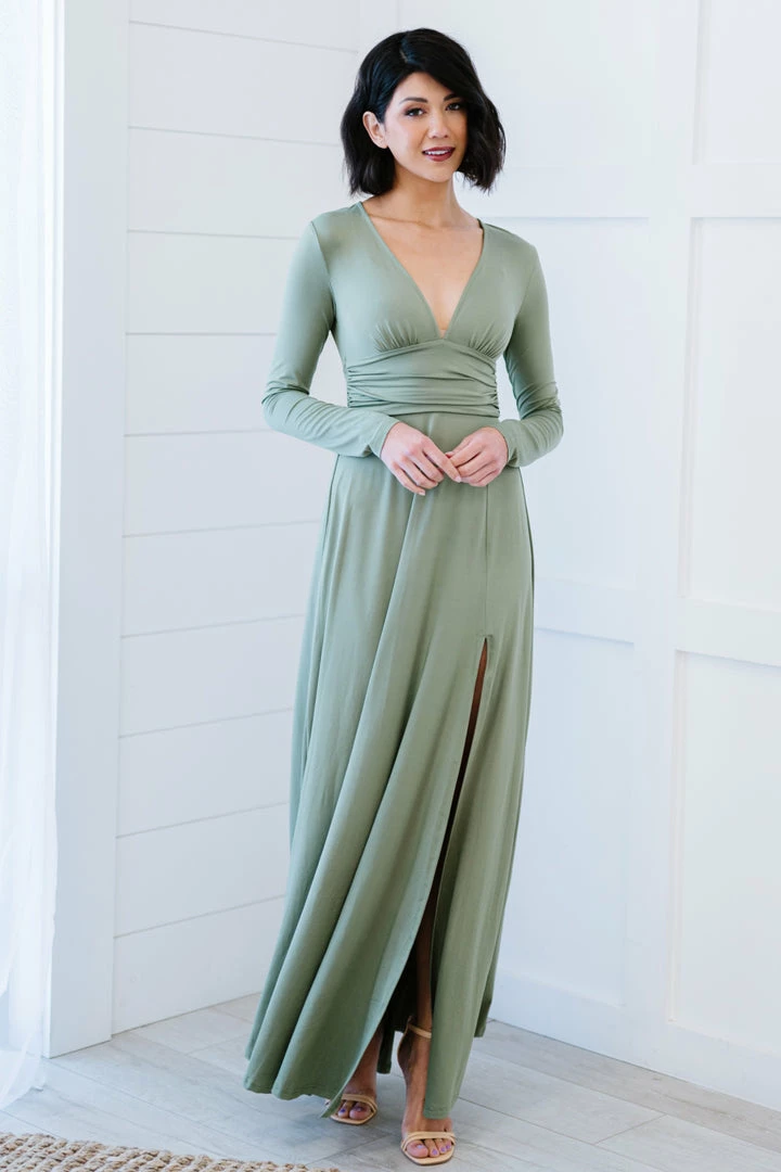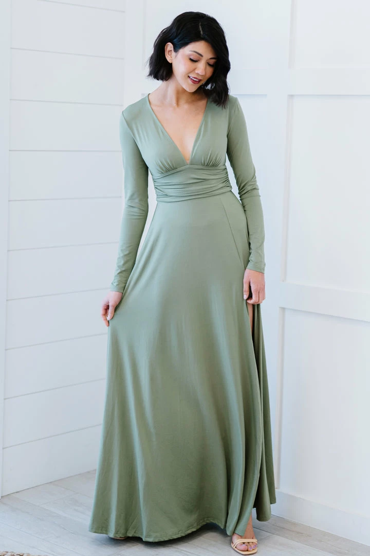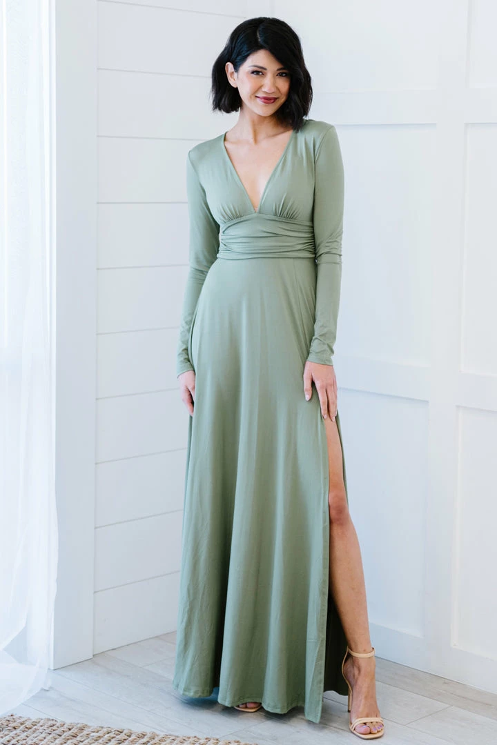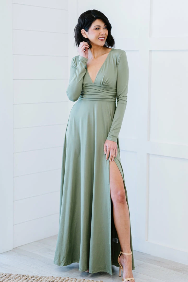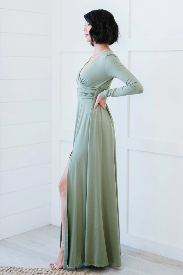 Turns heads in this stunning yet comfy maxi dress that you won’t ever want to take off. It has a plunging deep V-neckline and a thigh-high slit for an added element.