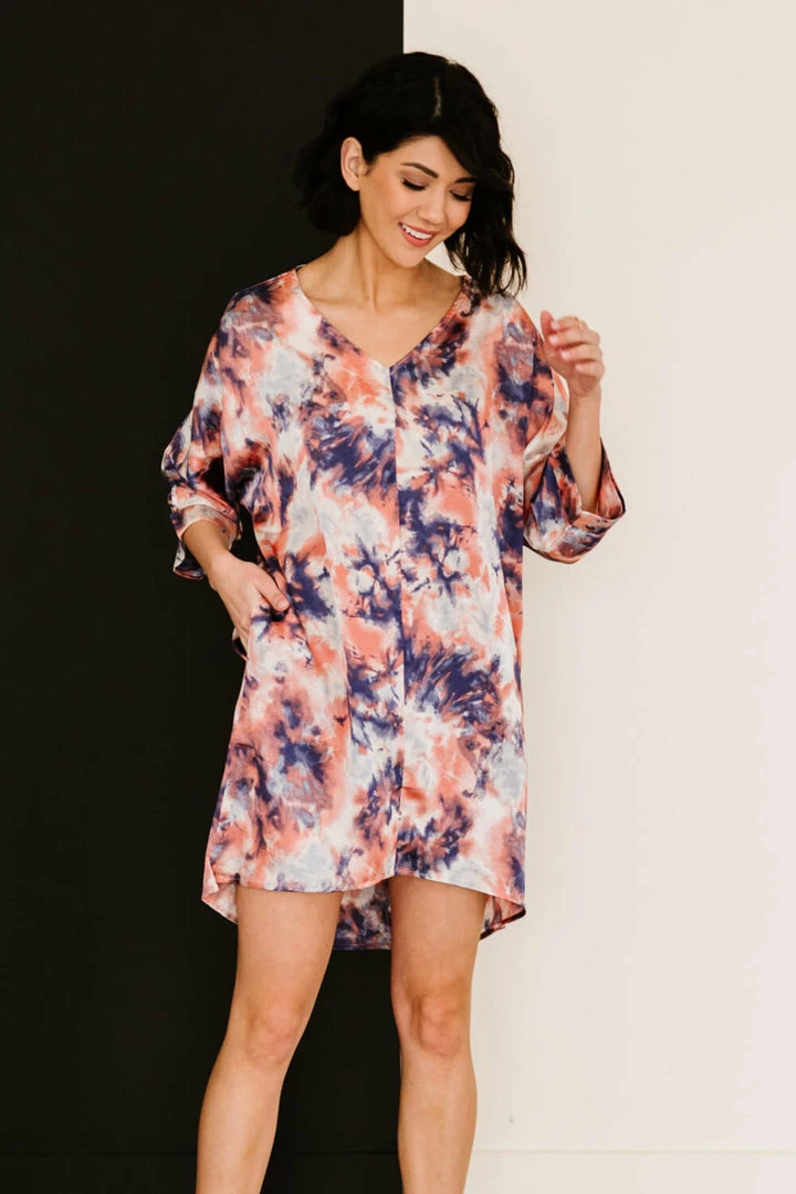 How to instantly boost your mood (it’s really simple): get this dress. The design mixes playful with sophisticated with a tie-dye print on a satin fabric, and you’ll absolutely love the understated details, which include a center seam, dolman sleeves with a rolled edge, and a high-low hem.