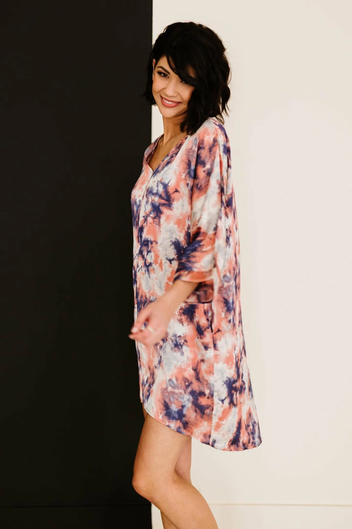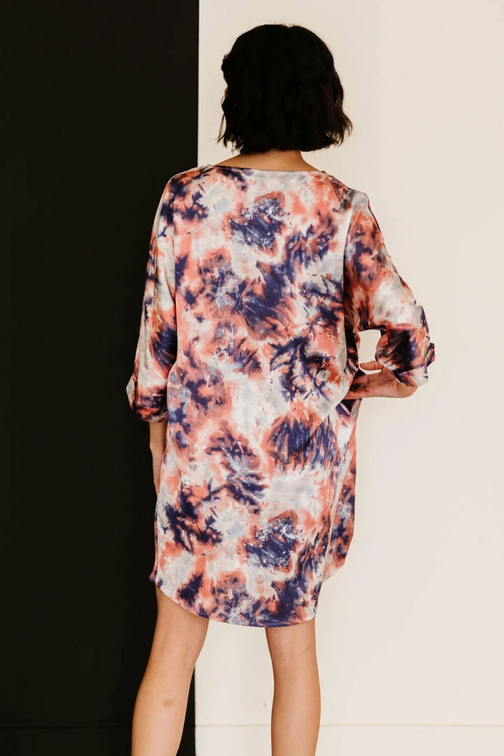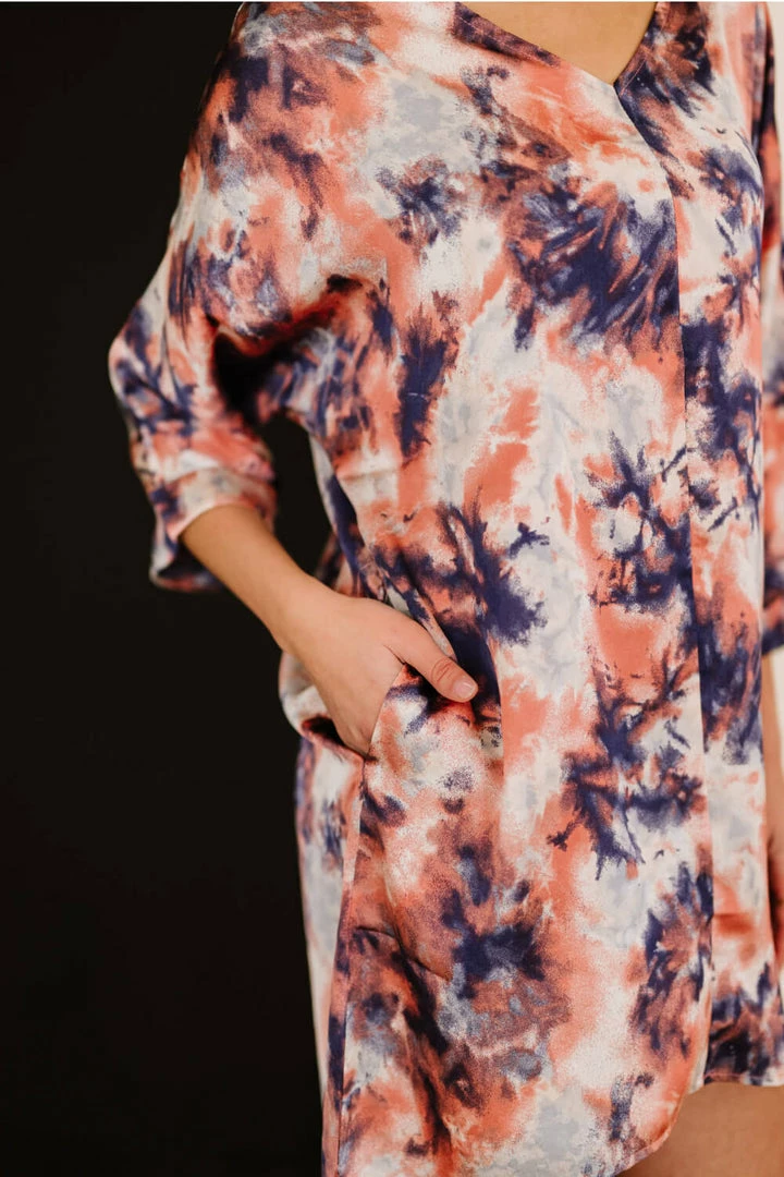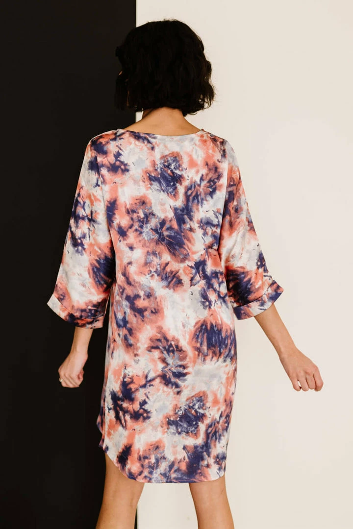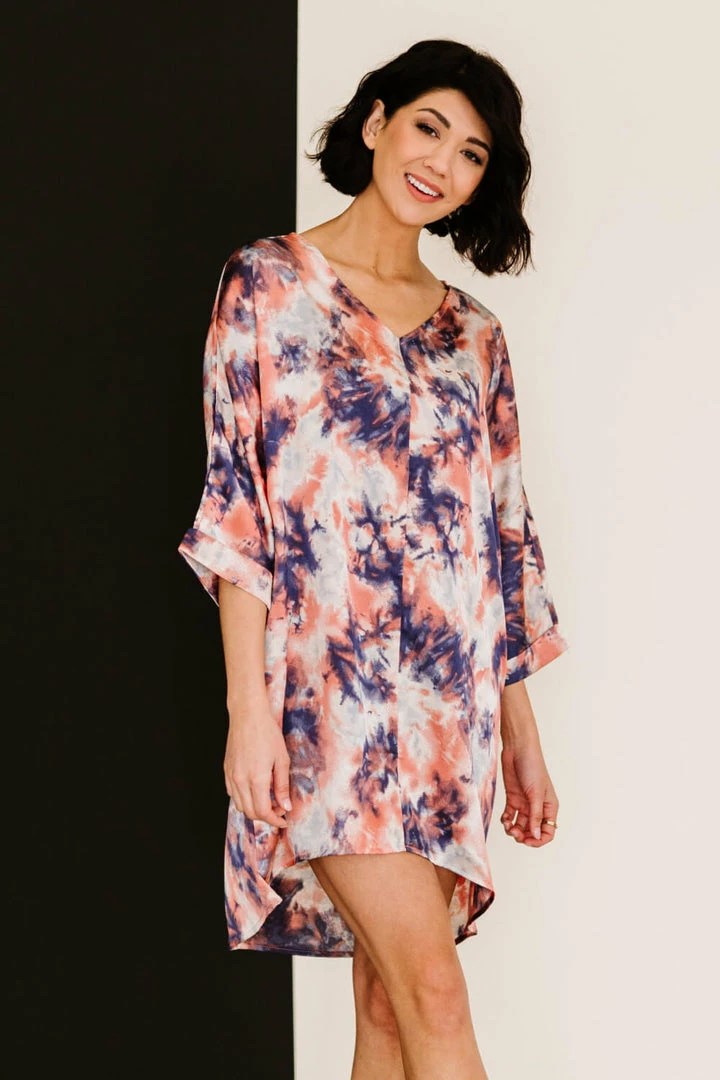 How to instantly boost your mood (it’s really simple): get this dress. The design mixes playful with sophisticated with a tie-dye print on a satin fabric, and you’ll absolutely love the understated details, which include a center seam, dolman sleeves with a rolled edge, and a high-low hem.