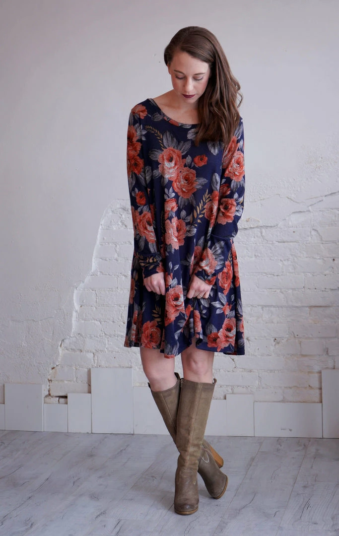 How gorgeous is this dress? Would you believe it if I told you it’s comfortable too? This floral swing dress features long sleeves, and a round neck. The shape is slimming, but not fitted. The flow of the skirt gives the body such a lovely shape, you will wear this dress all the time!
