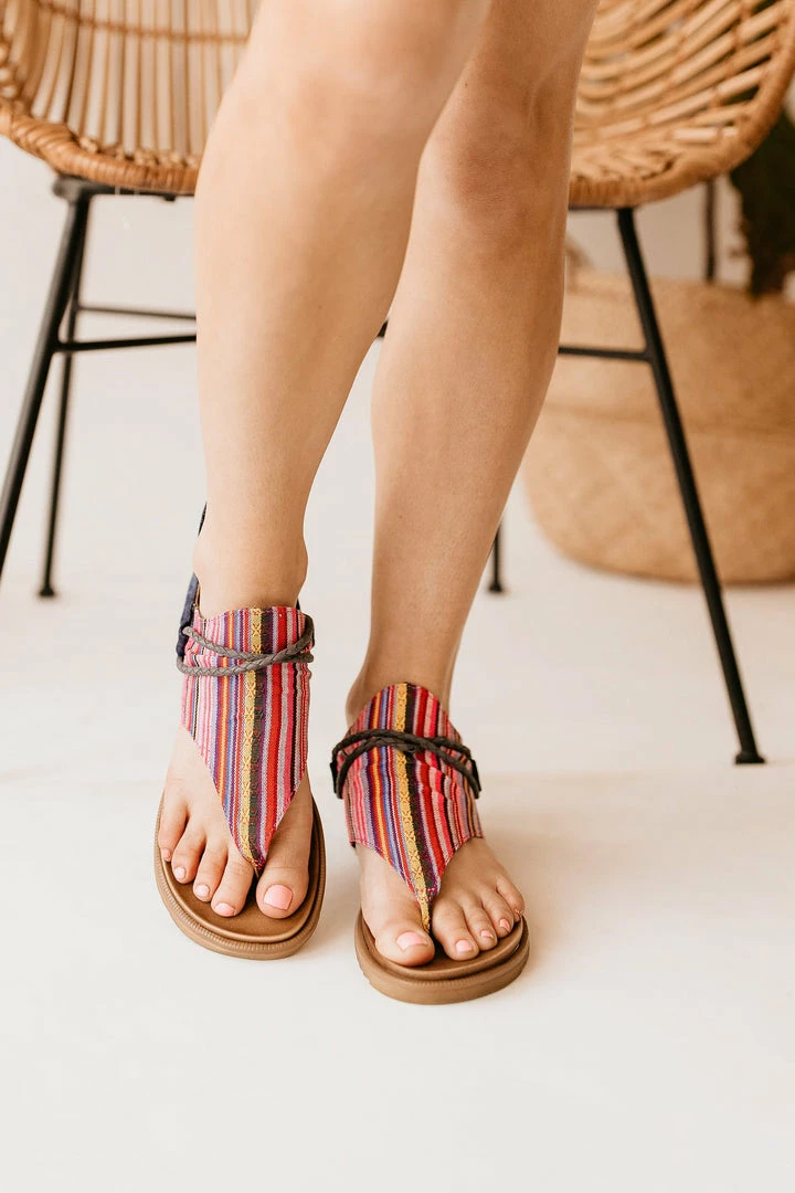 Our favorite sandal silhouette for summer now comes in a beautiful blue and pink pattern!