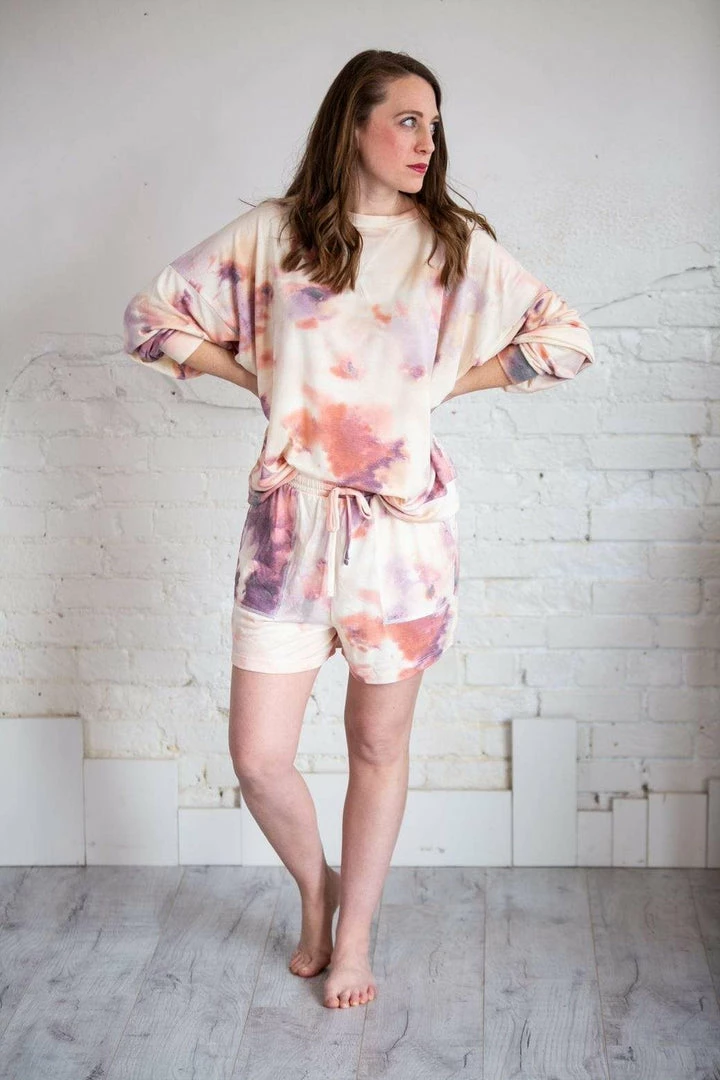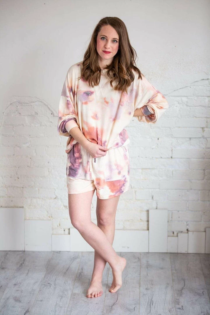 Whether it’s Spring cleaning day, a crafting day in, or errand running, you will live for this lounge set! The colors are just so pretty, but lets talk about the fit and feel!!! The dreamiest fabric, so soft and EASY CARE! The drop shoulder top is super cute and can easily be worn with denim for your day date with friends. The shorts have a functioning drawstring and nice big pockets to hold your music for your headphones, while you concur your day!!!