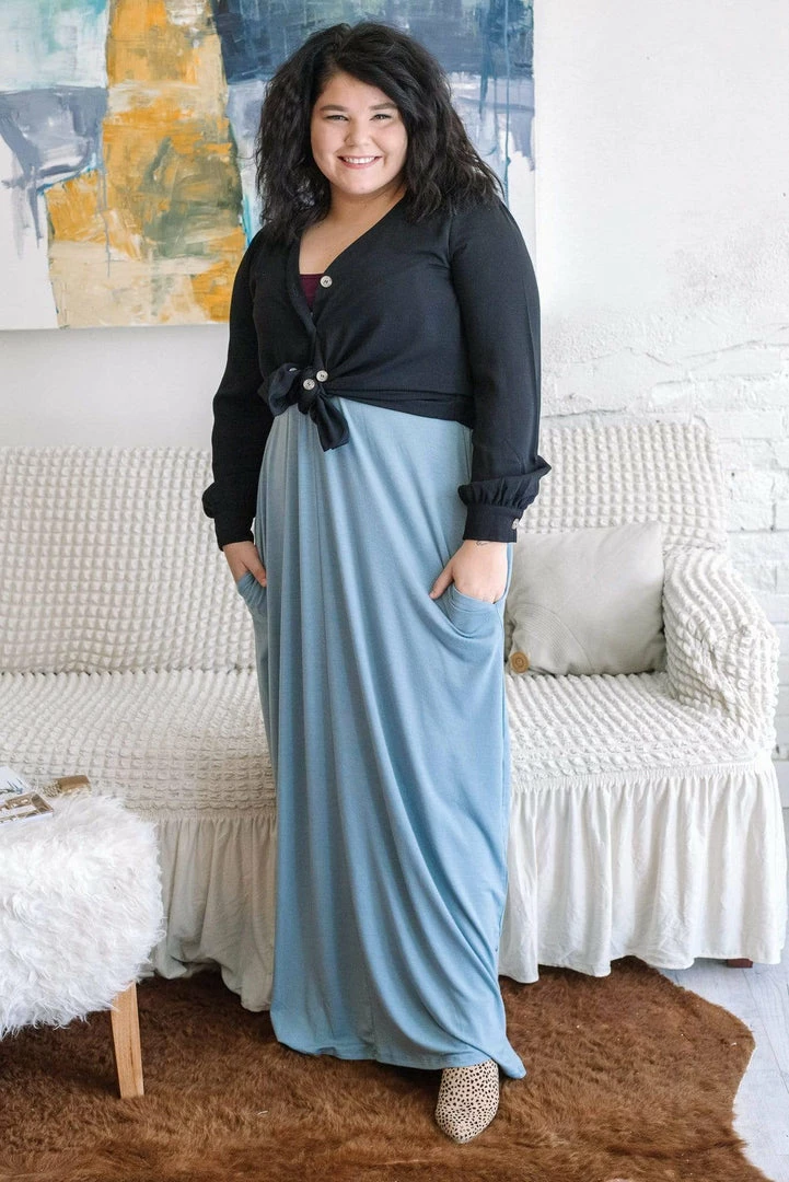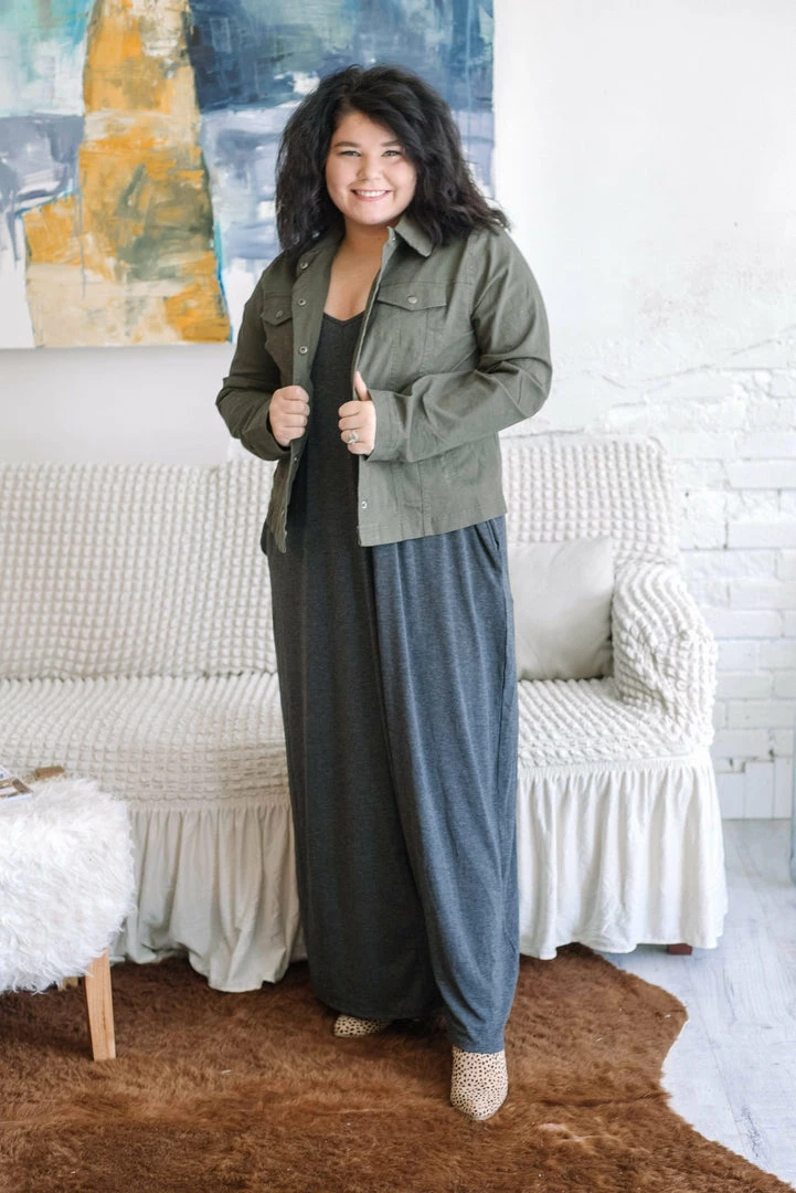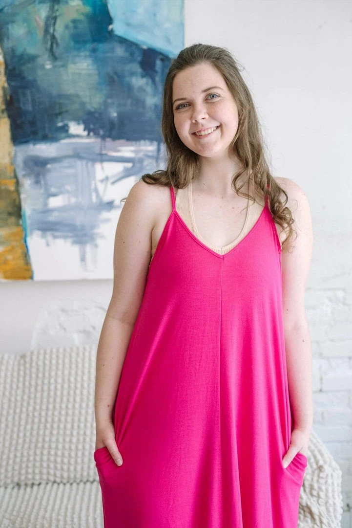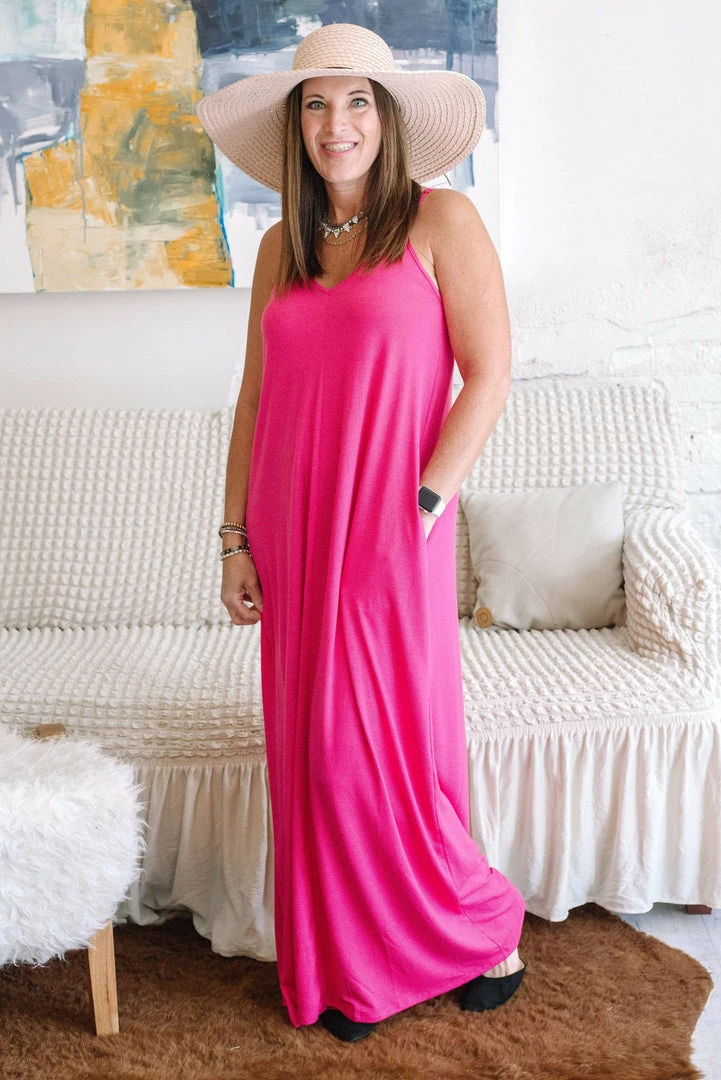 Feel like the regal queen you are in The Elizabeth Jane Dress! This sophisticated maxi features a classic spaghetti strap style bodice with a stunning v-neckline. And did we mention pockets!!