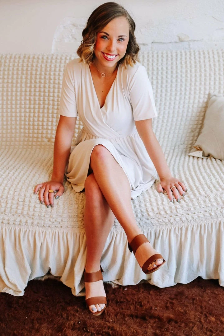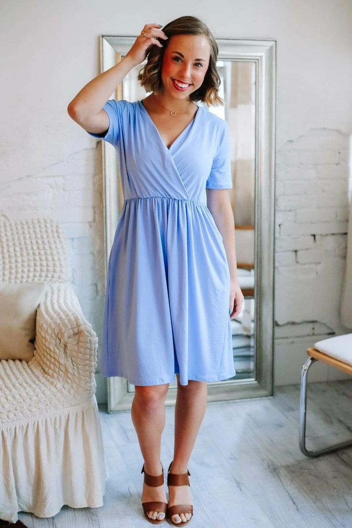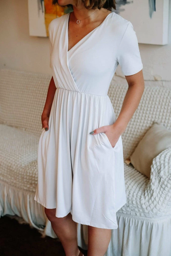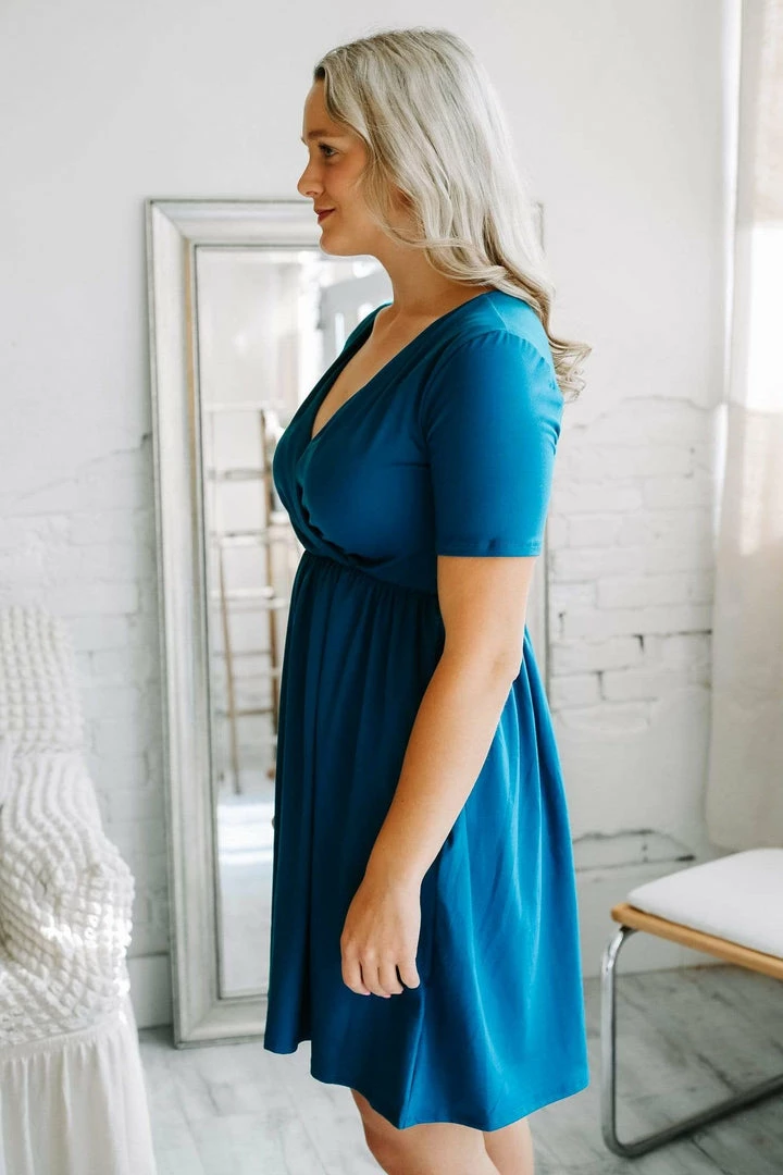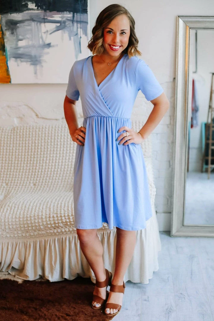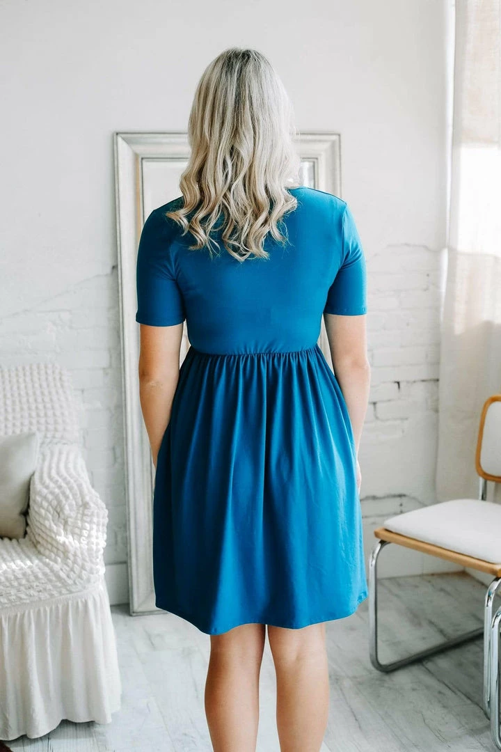 These dresses is an EVERY season dress. Pair with sandals, throw on a cute jean jacket with wedges or try one of our multi season cardigans to wear right now with sandals or your favorite boots later. The buttery soft fabric and flattering waist line with make you want to add several colors to your lineup.