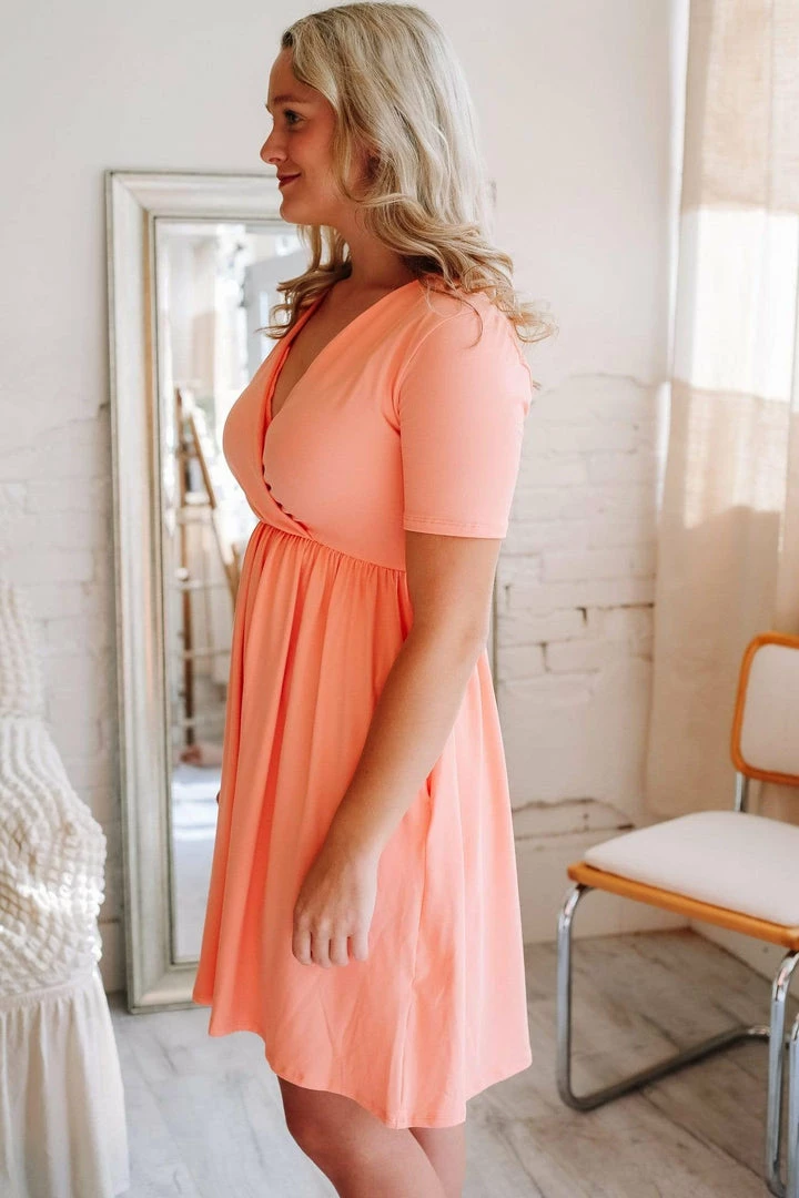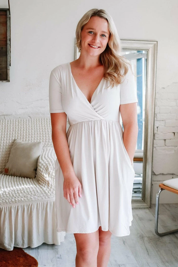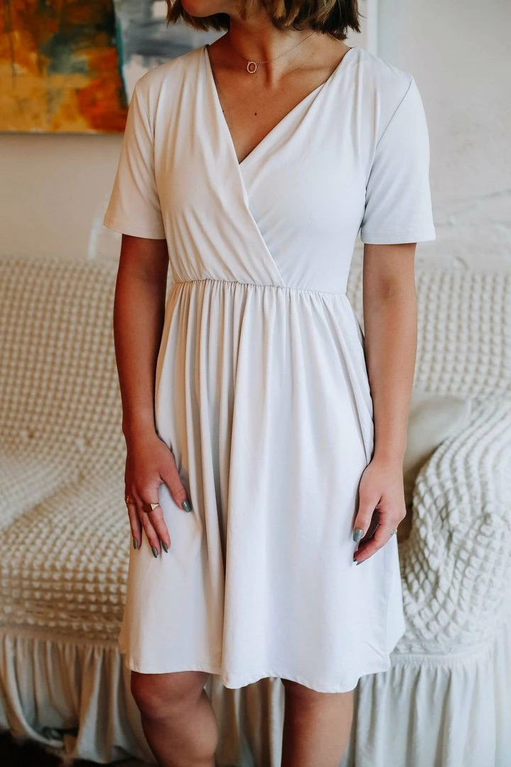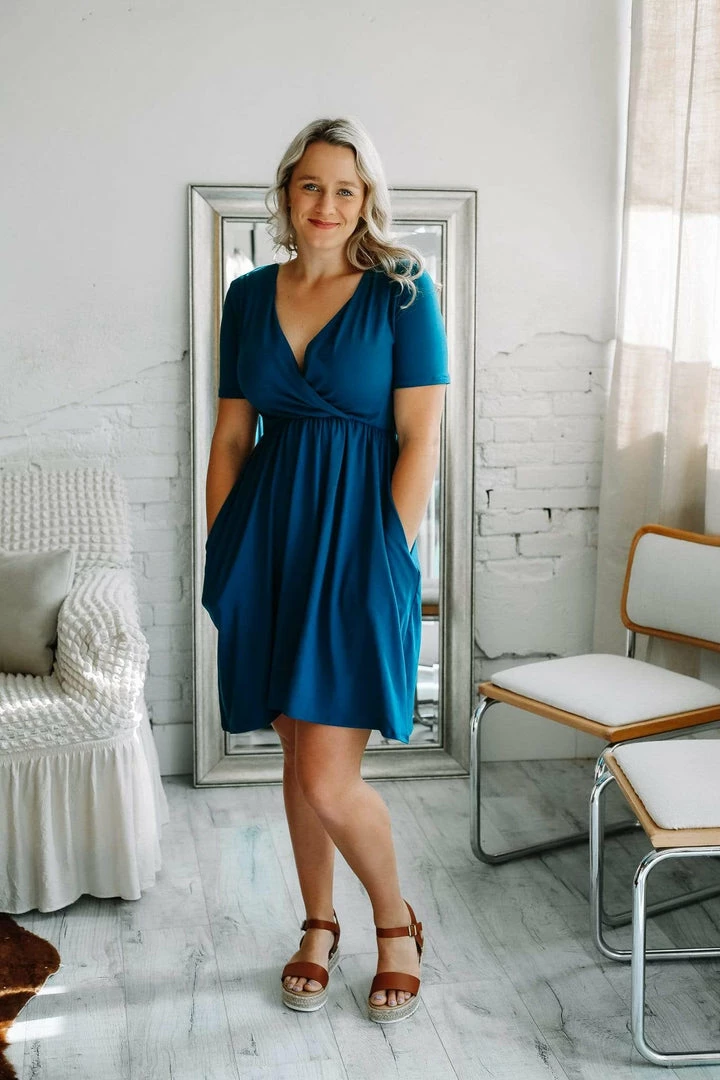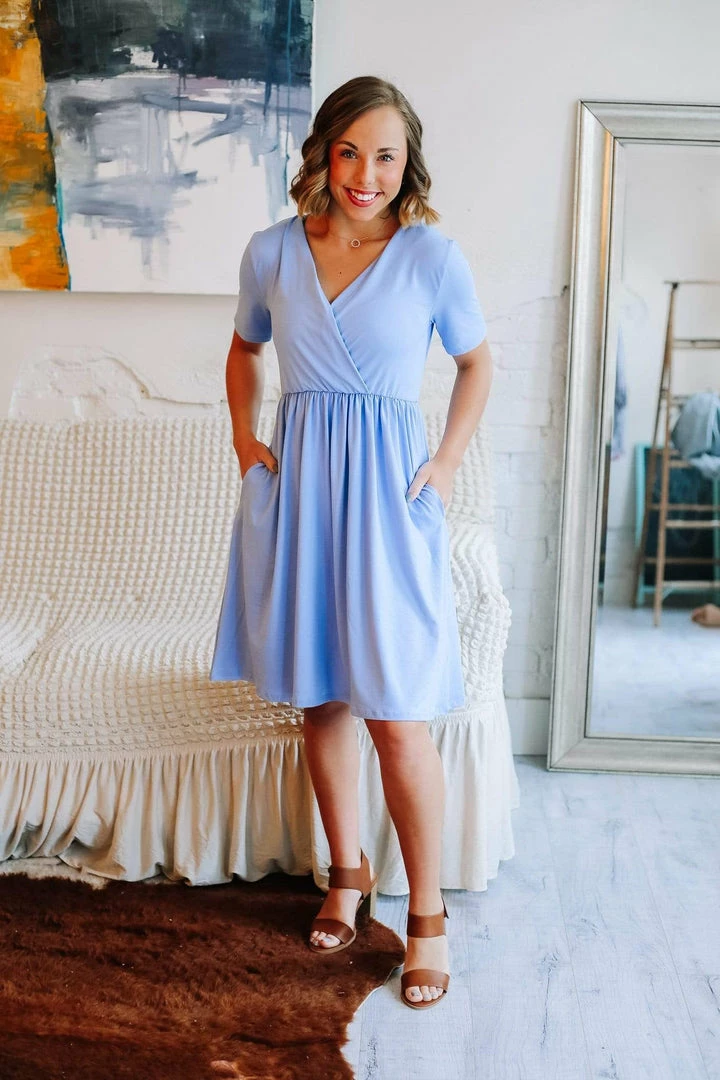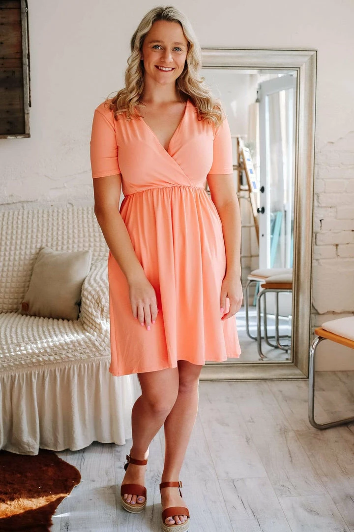 These dresses is an EVERY season dress. Pair with sandals, throw on a cute jean jacket with wedges or try one of our multi season cardigans to wear right now with sandals or your favorite boots later. The buttery soft fabric and flattering waist line with make you want to add several colors to your lineup.
