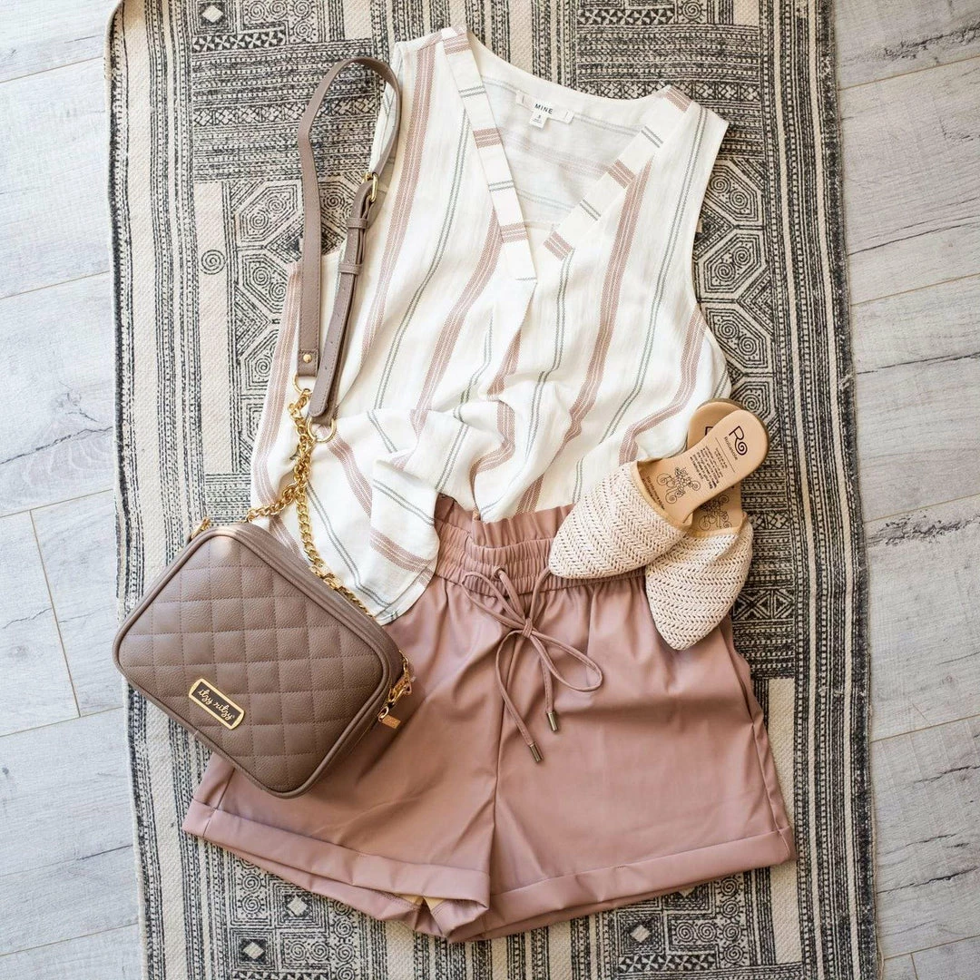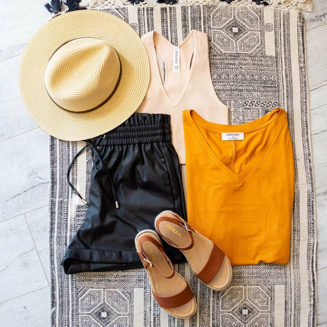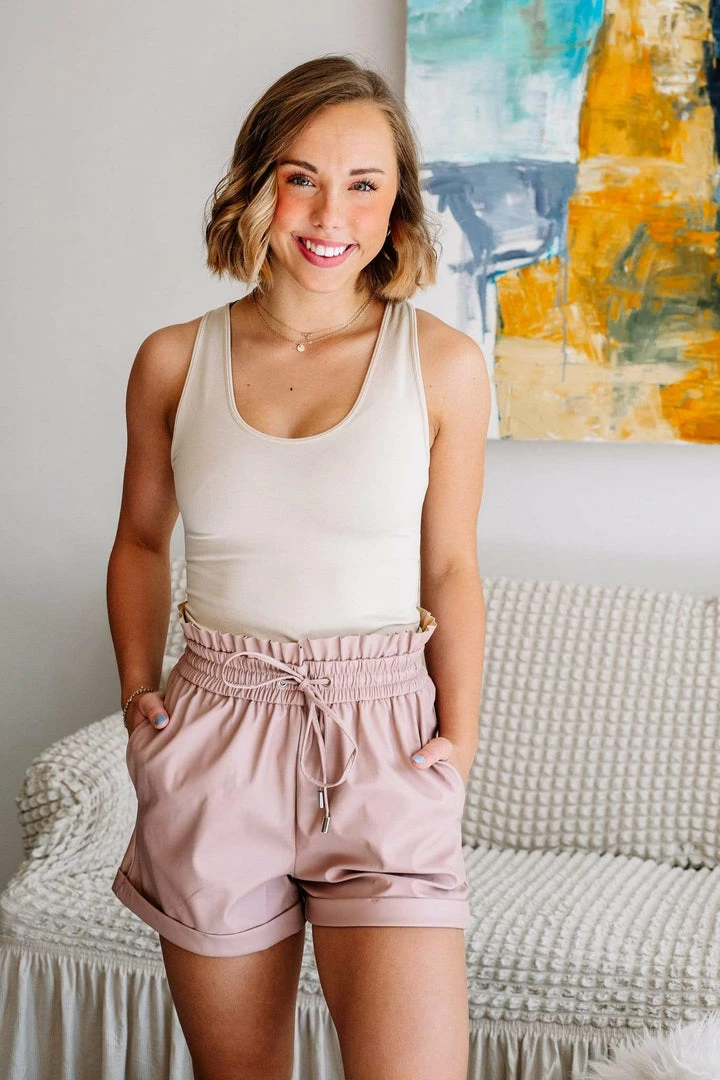 - Fits true to size because the faux leather does not stretch but the waistband is extra stretchy