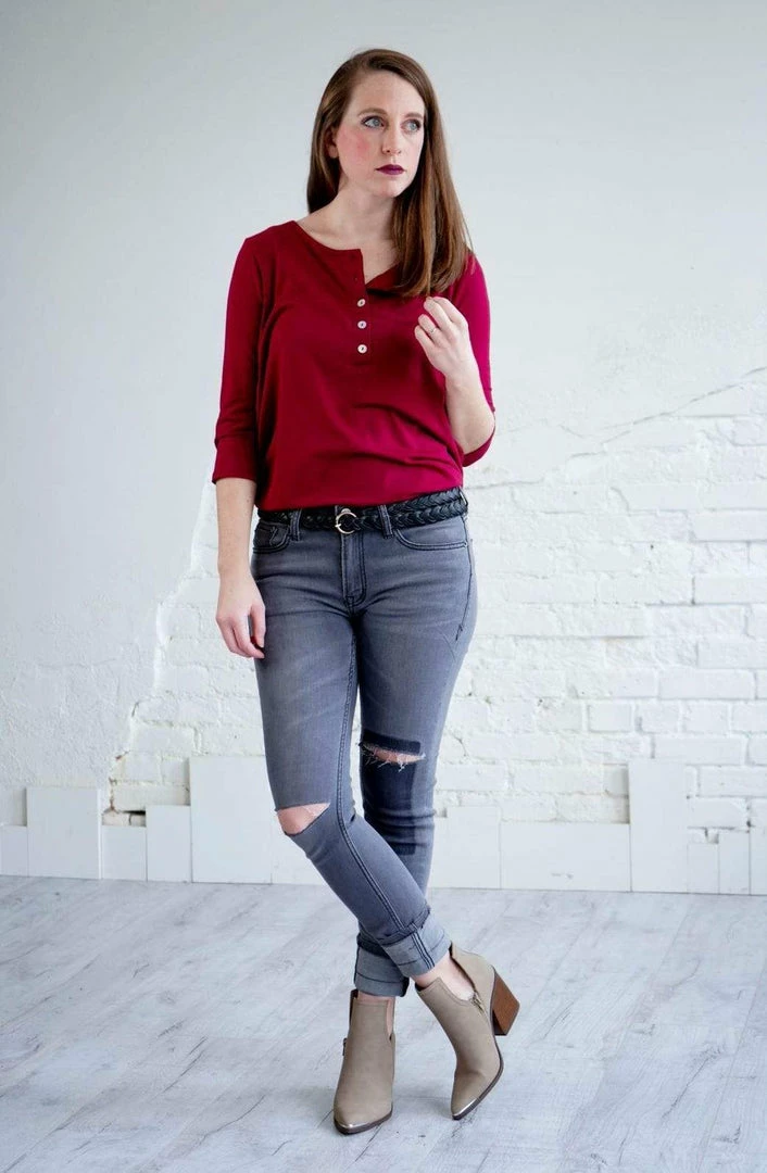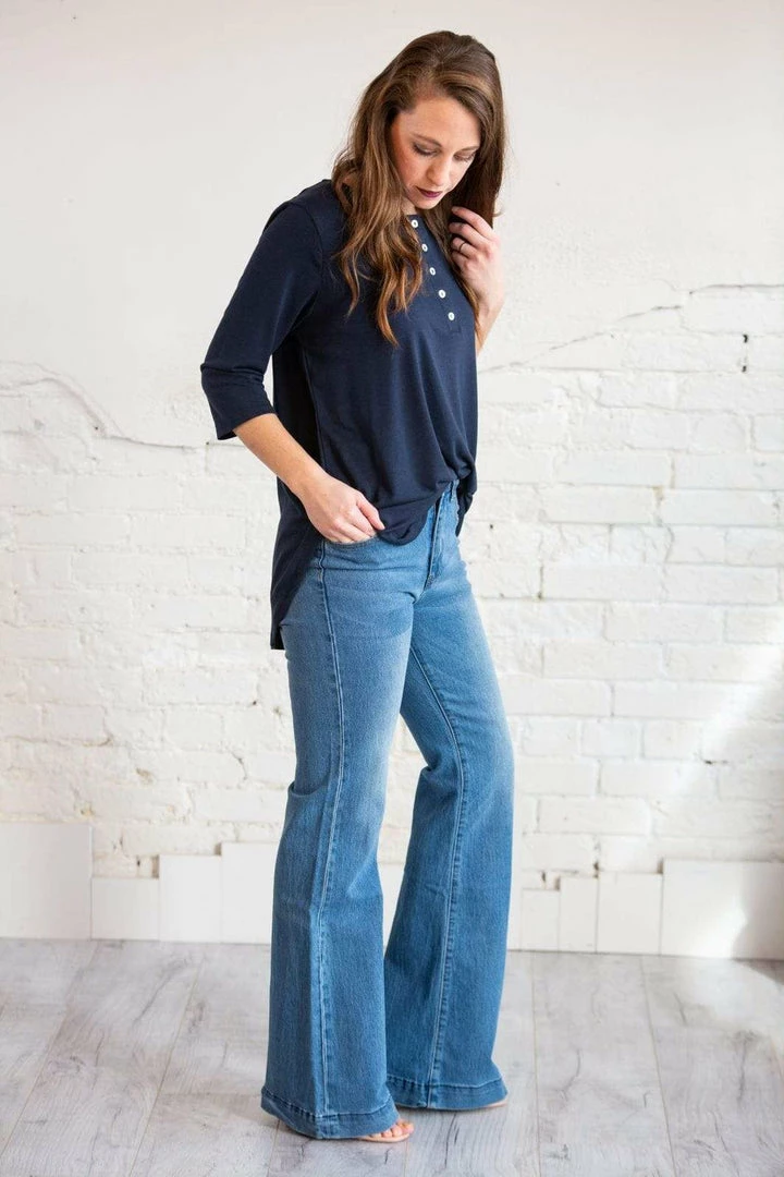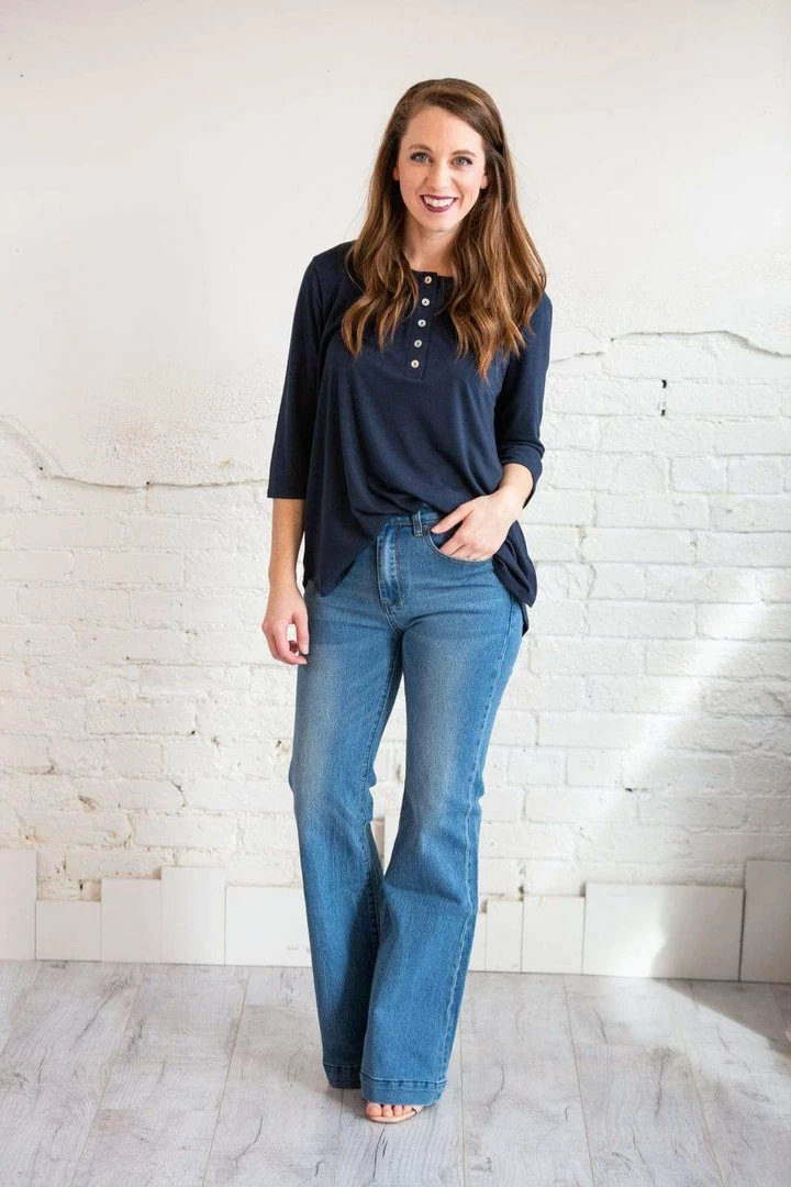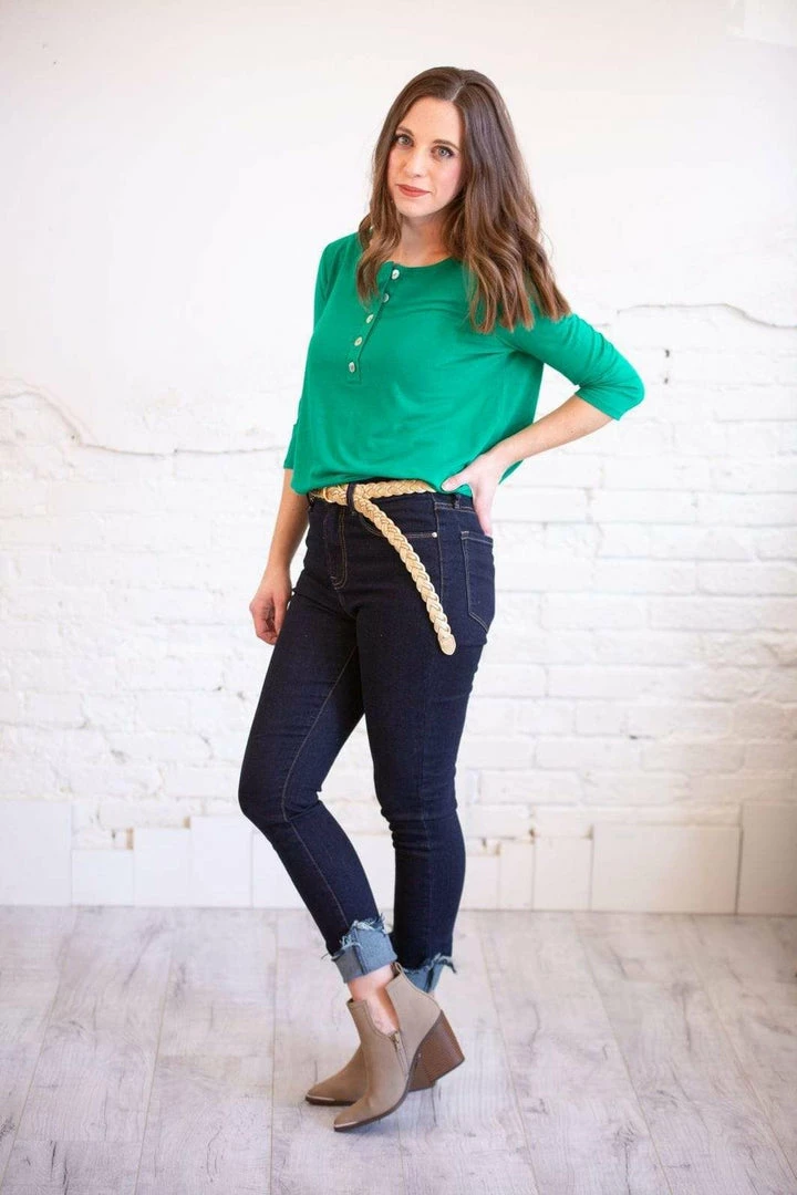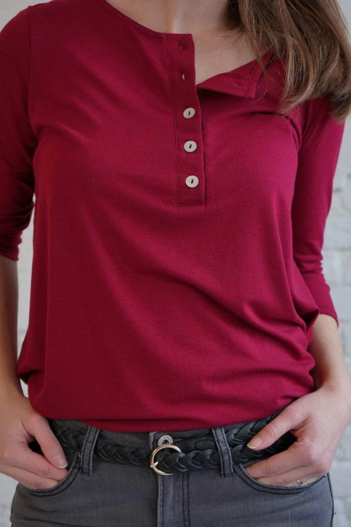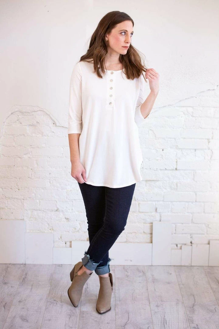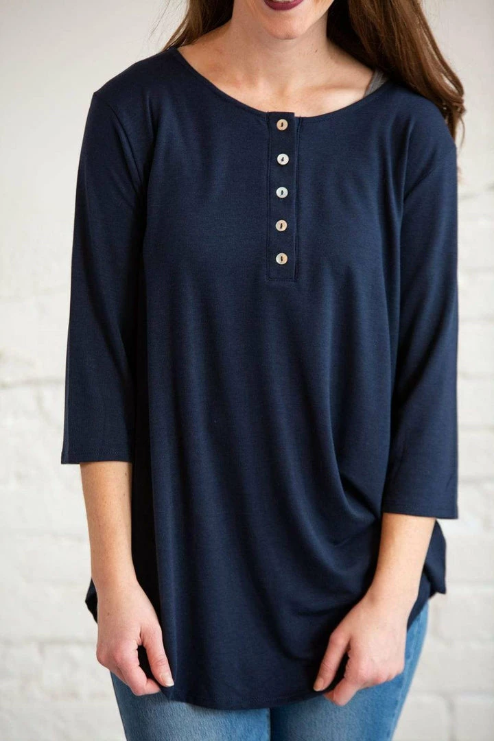Having different styles of good basics is so important in every wardrobe. They are perfect for laying, or wearing alone. You can style them in so many different ways for a French tuck, full tuck and untucked in everything from skirts to denim! This amazing basic features 3/4 sleeves, a half button closure and a dolphin hem in 9 colors with amazing stretch and so soft!